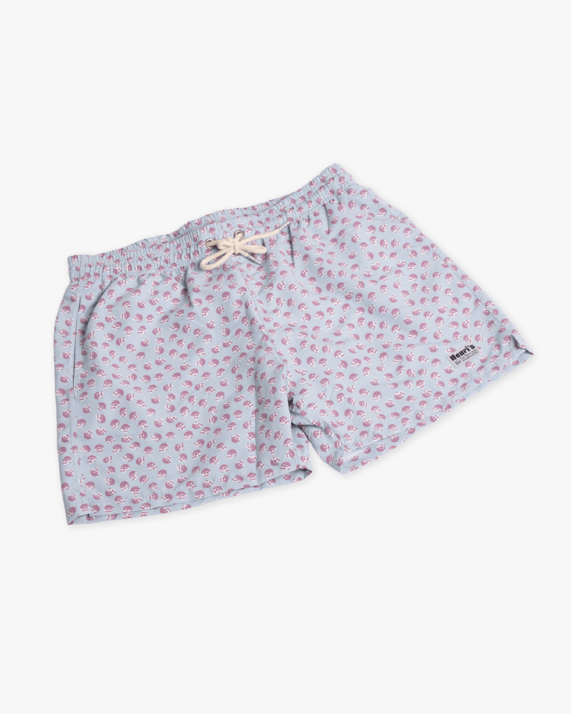 Traje de baño color verde grisáceo de poliamida y poliéster con cintura elástica, rejilla, cordón con acabado metálico, bolsillos laterales y bolsillo trasero con velcro.